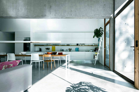 The conglomerate which forms the cliffs on the River Natisone gorge is none other than natural concrete and this inspired us to make wide use of this material. Concrete conglomerate has also been used freely for the floors.