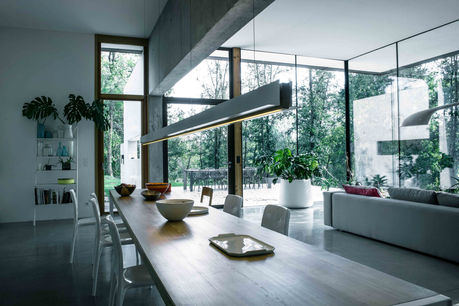The idea was to create total symbiosis with the river and this led to the decision to make the south side entirely in glass, extending the already generous dimensions with a large terrace overhanging the drop below.